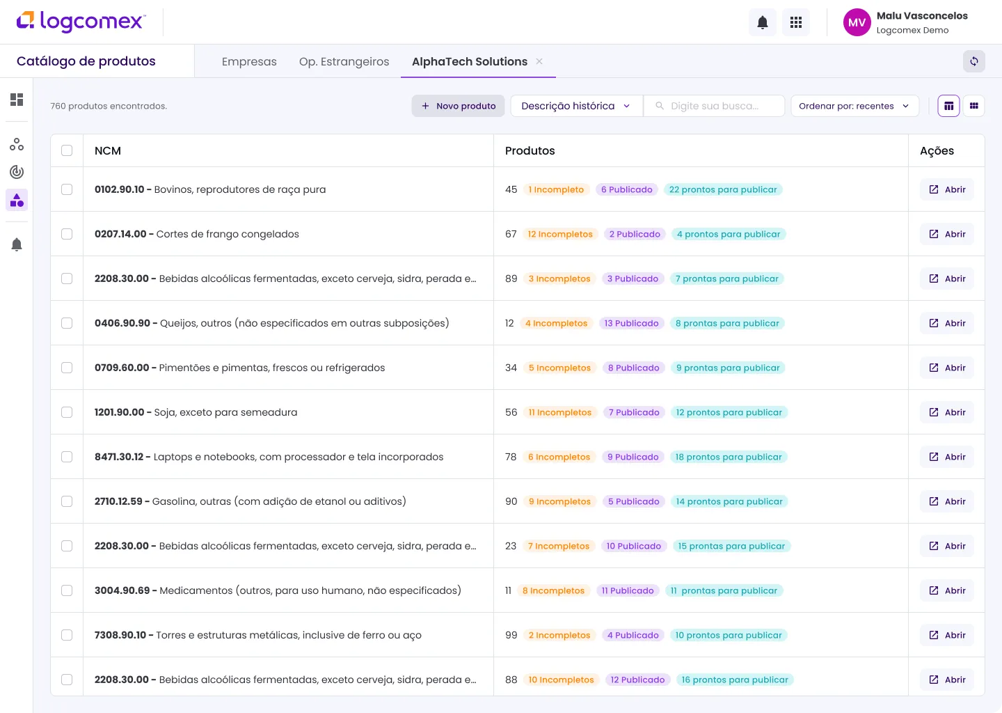 Conectamos seus embarques a pedidos e aos SKUs contidos neles para que suas equipes possam manter-se atualizadas.
