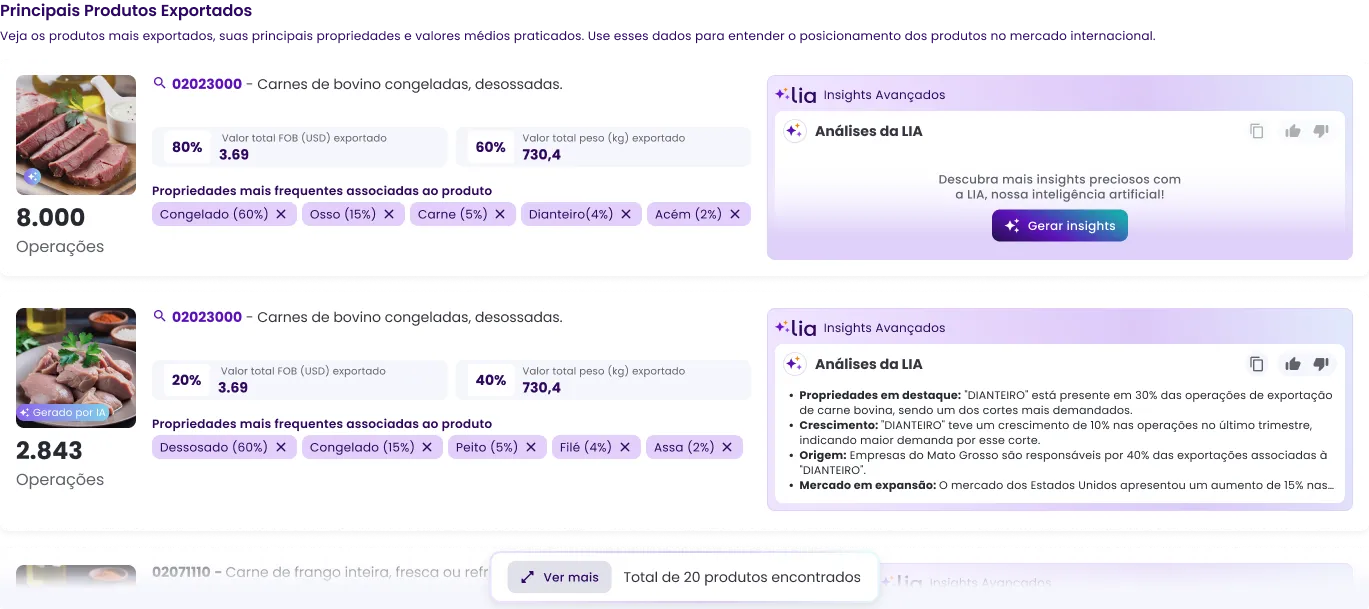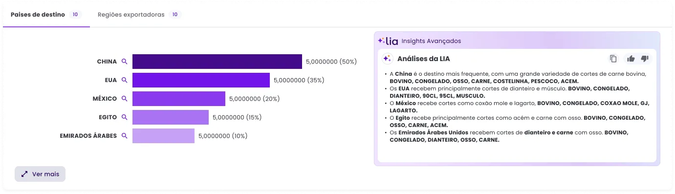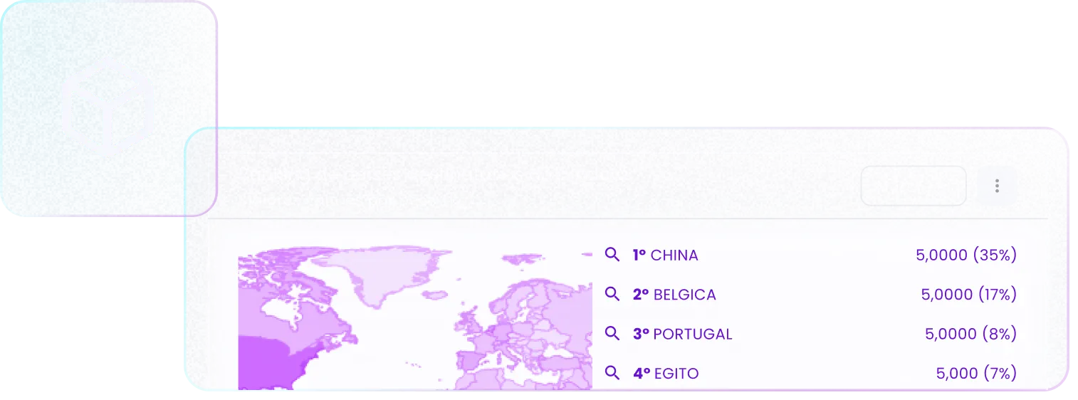 Identifique os principais compradores globais , filtre por frequência de compra, regiões de atuação e volumes movimentados. Direcione sua prospecção para leads qualificados, com alto potencial de conversão e alinhados ao seu perfil de exportação.