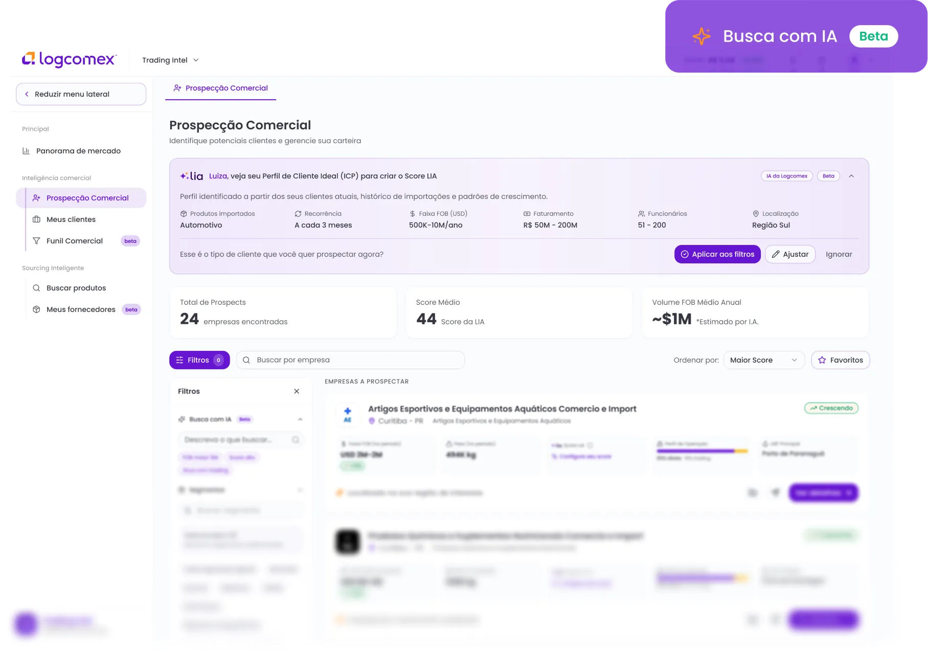 Identifique importadores com potencial real, gaps de mercado e oportunidades por segmento.